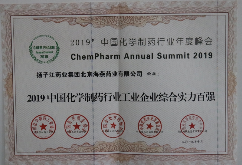 2019中國化學(xué)制藥行業(yè)工業(yè)企業(yè)綜合實力百強